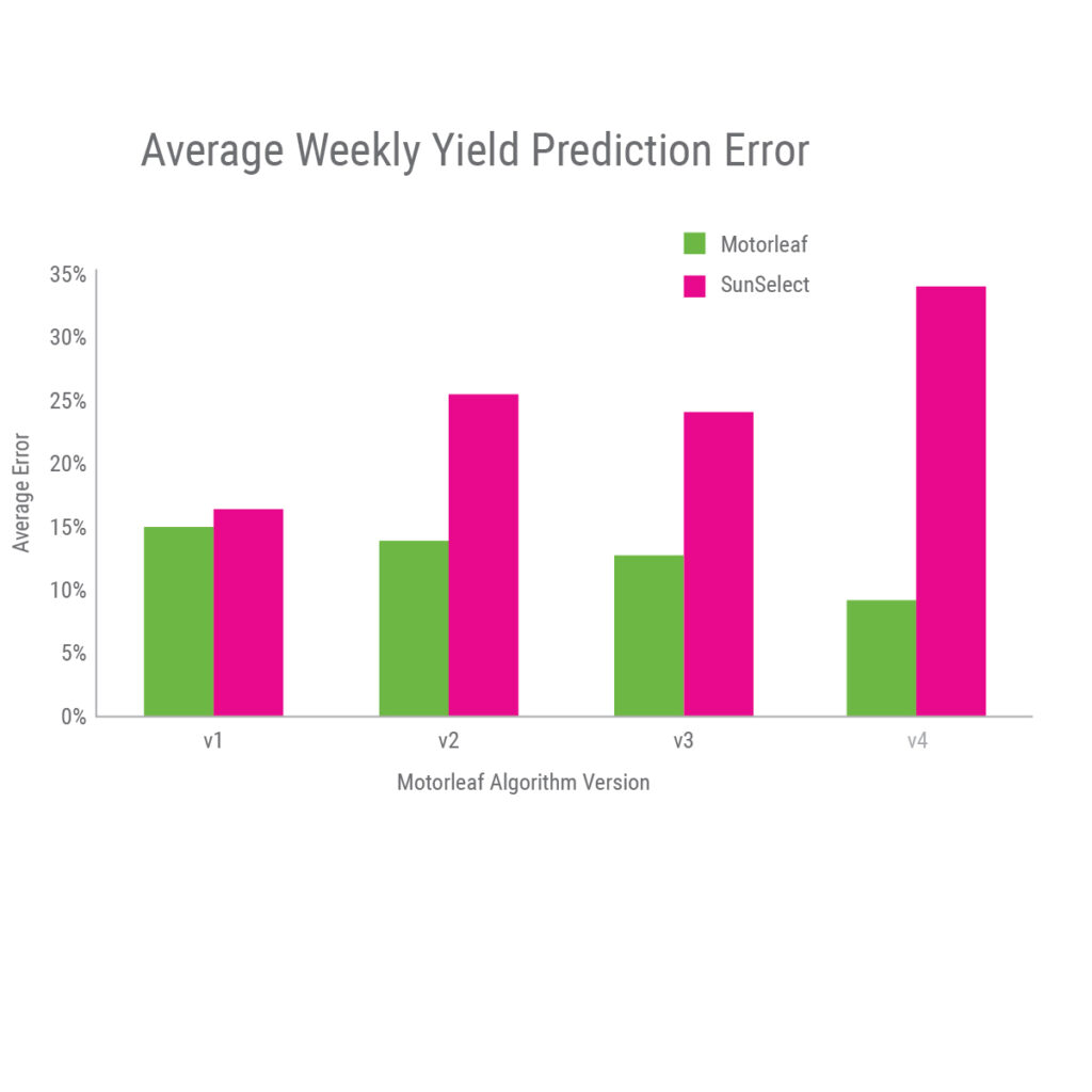 Motorleaf’s current phase of data acquisition from SunSelect now aims to strengthen the automation technology so it can surpass highly accurate two-week harvest yield predictions. Sights are set on providing accurate predictions more than a month into the future.
